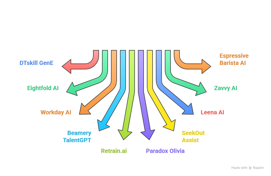 DTskill GenEEnterprise HR AI orchestration layerMulti-agent HR workflow automation + skills/learning/support orchestrationSkills intelligence, HR service automation, onboarding flows, workforce processesMedium–High