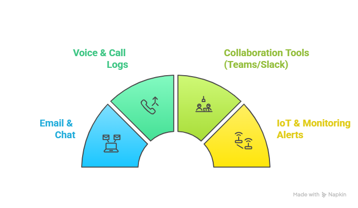 - IoT & Monitoring Alerts – Machine alerts, system logs, or infrastructure warnings are captured, classified, and routed through AIOps for helpdesk frameworks. This enables predictive responses, turning potential system failures into preemptive resolutions.