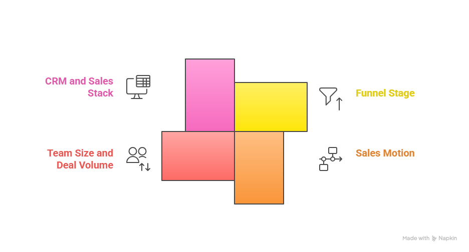 The right AI sales agent depends on where your team loses the most time across the sales funnel. Choosing effectively requires aligning the agent’s capabilities with your sales structure, motion, and systems.