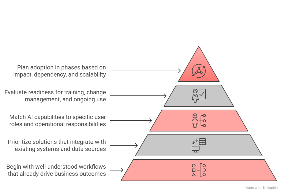 Effective selection also considers how AI aligns with people, systems, and scale. Solutions that integrate smoothly with current tools and support defined roles are easier to adopt and sustain over time.