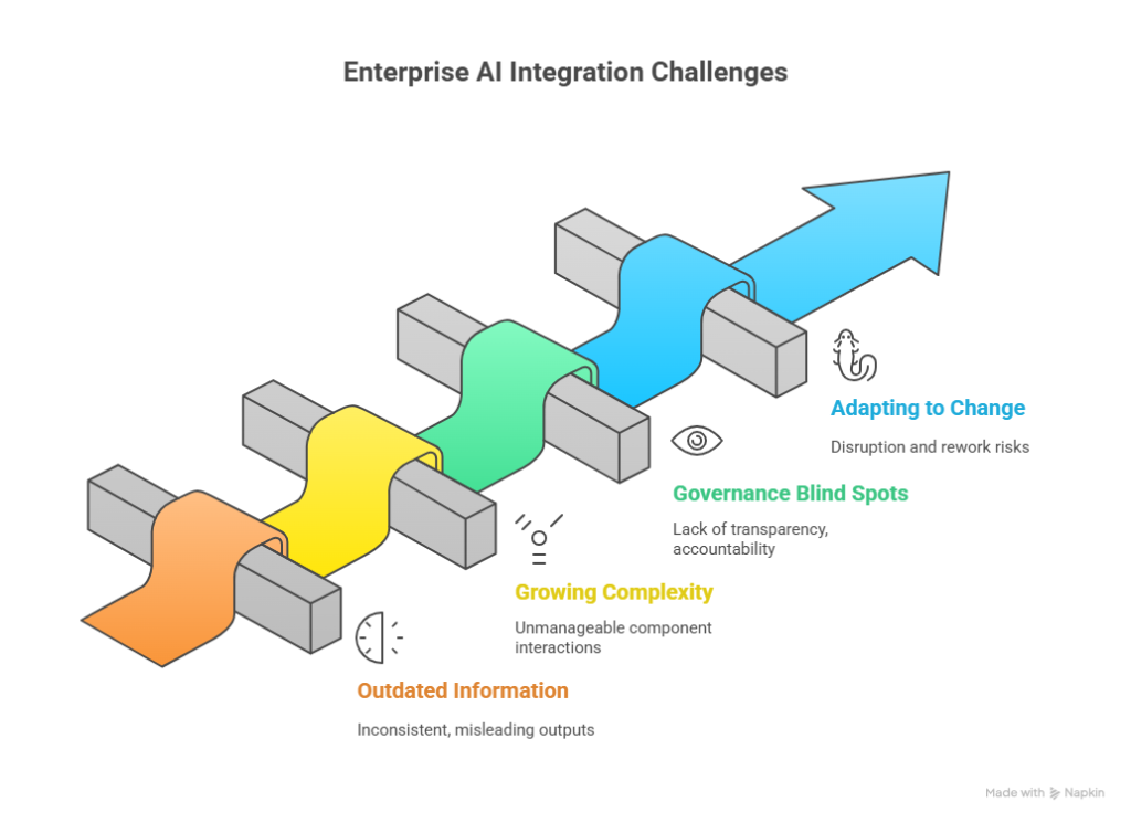 Large-language models (LLMs) such as GPT 4, Claude, Llama, etc., have become central to how businesses think about AI. They power natural-language generation, summarisation, reasoning, conversational agents, and more. But for enterprises’ AI integration, several challenges surface: