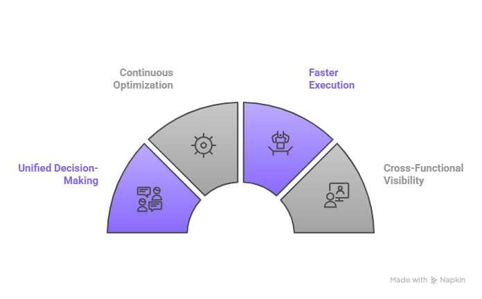 - Unified Decision-Making: A consistent intelligence layer connects functions, ensuring decisions are aligned and data-driven.